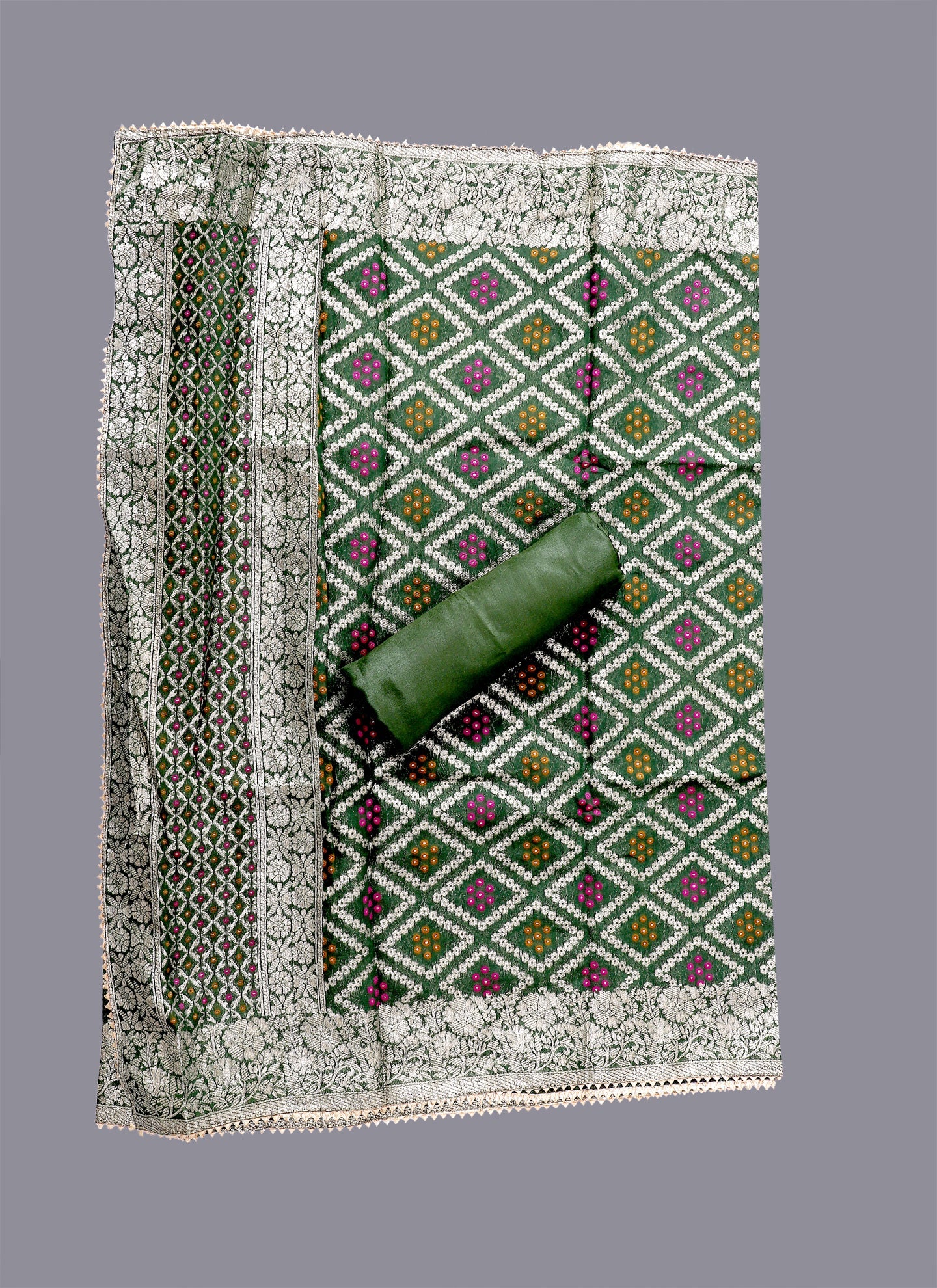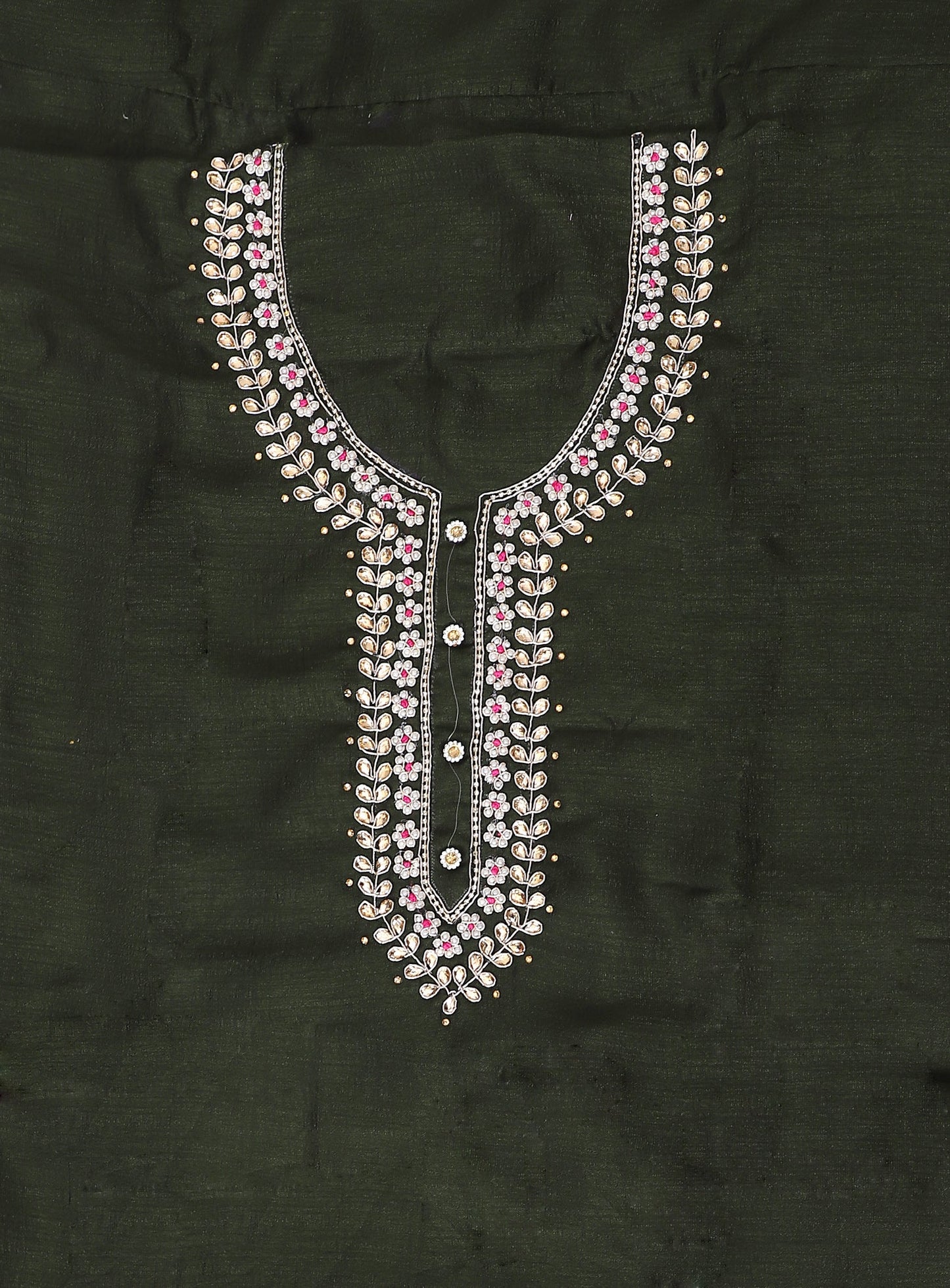 Silk Embroidered Green Unstitched Dress Material With Dupatta