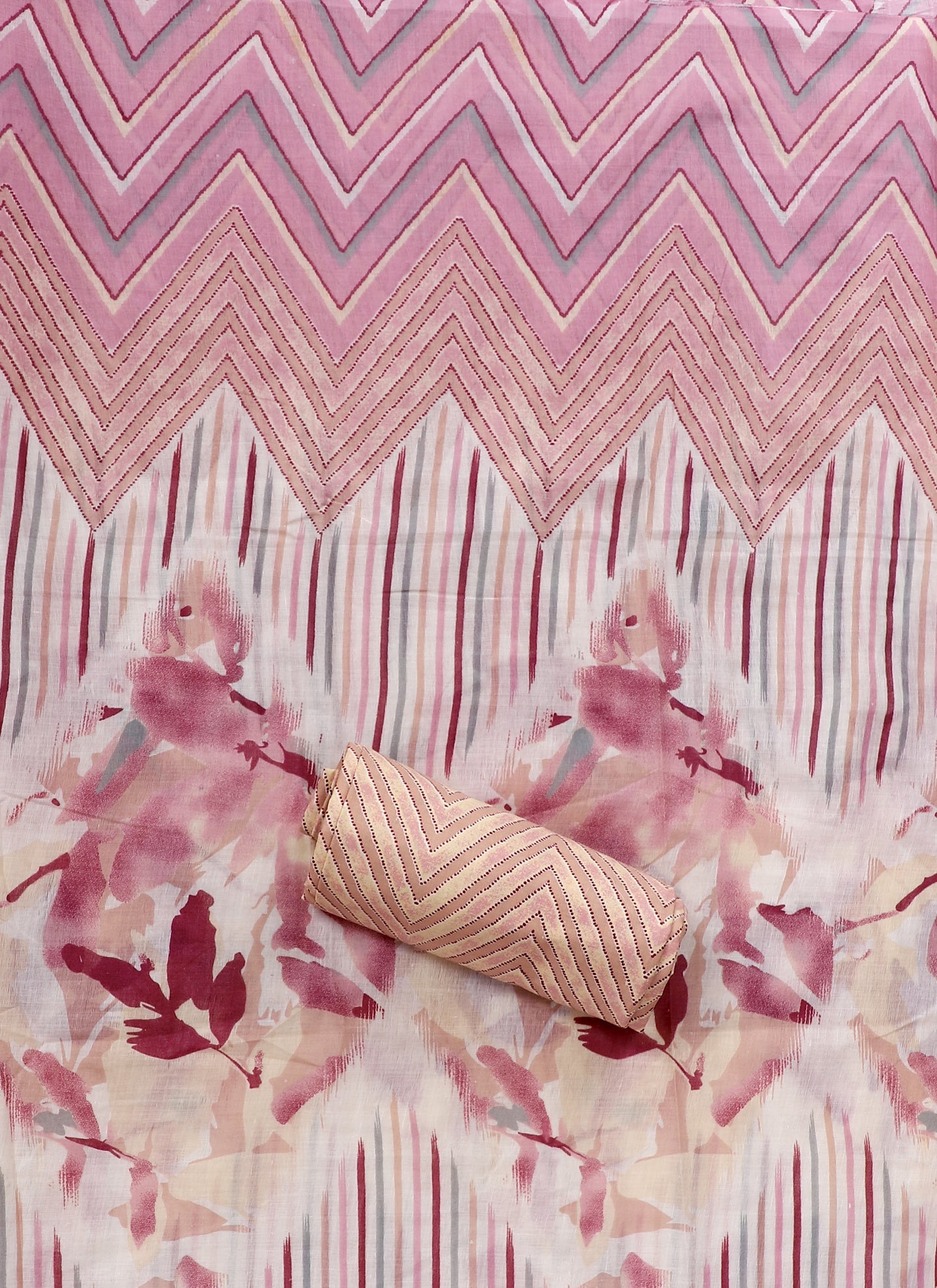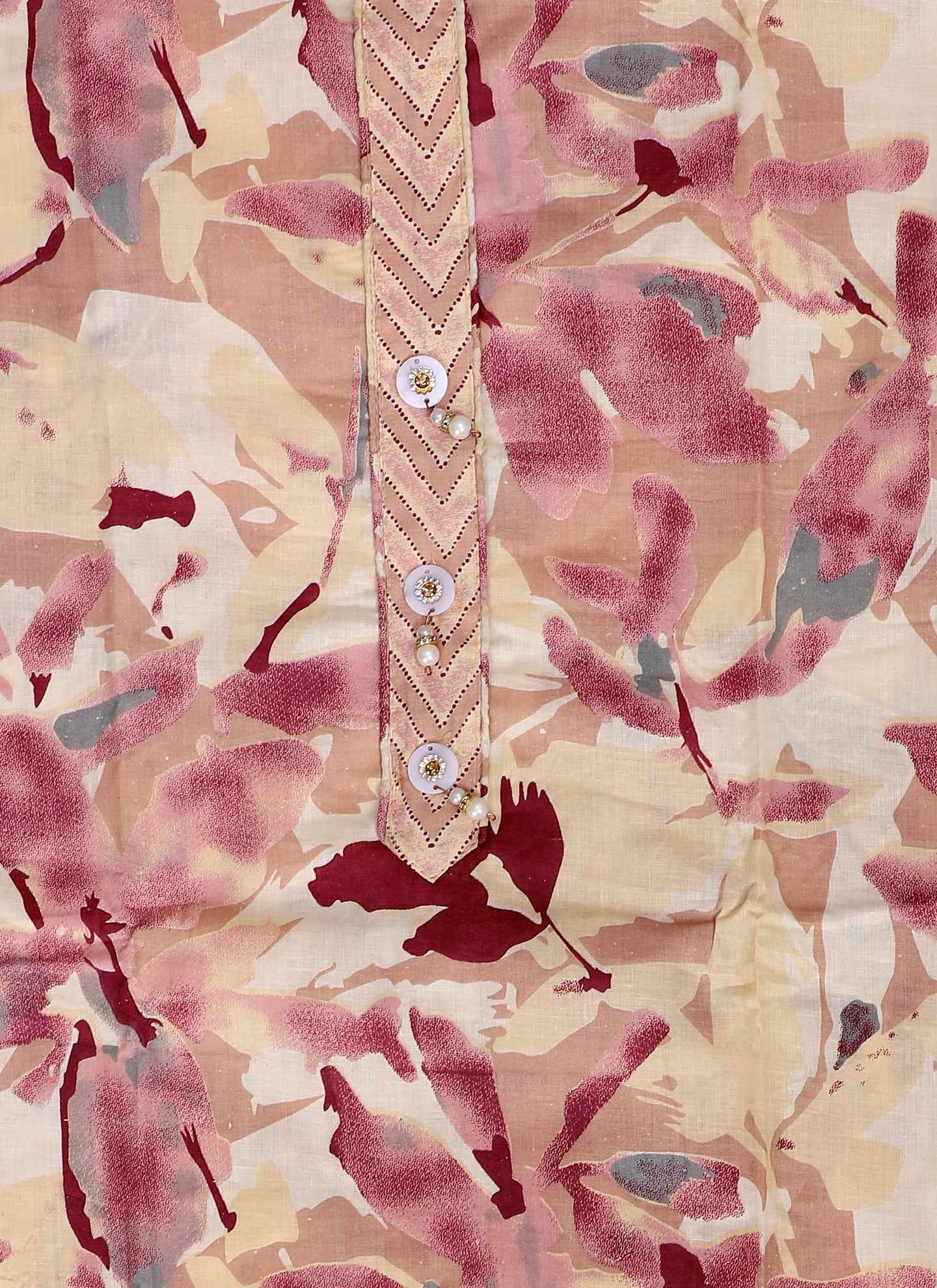 Details: Unleash your creativity with our stunning peach cotton dyed abstract pattern unstitched dress material. Embrace the artistry of abstract patterns in subtle shades of peach, crafted from high-quality cotton fabric, this dress material offers both style and comfort
