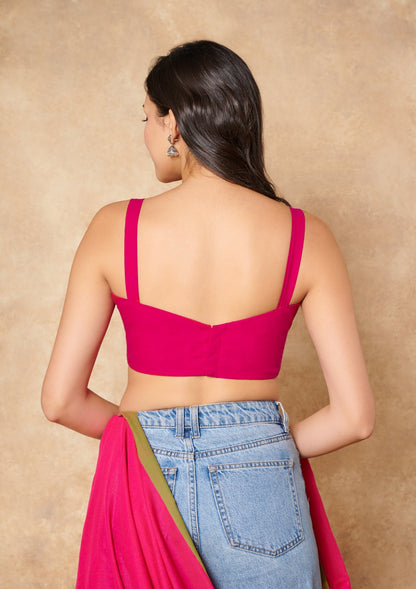 Description - Elevate your wardrobe with this elegant pink bustier-style blouse. Designed with a structured fit, it features a sweetheart neckline and broad shoulder straps for added support. The tailored cups enhance the silhouette, making it a versatile piece for both ethnic and contemporary styling. Crafted from high-quality cotton, it offers a breathable and comfortable fit. Pair it with sarees, lehengas, or high-waisted pants for a bold yet sophisticated look.