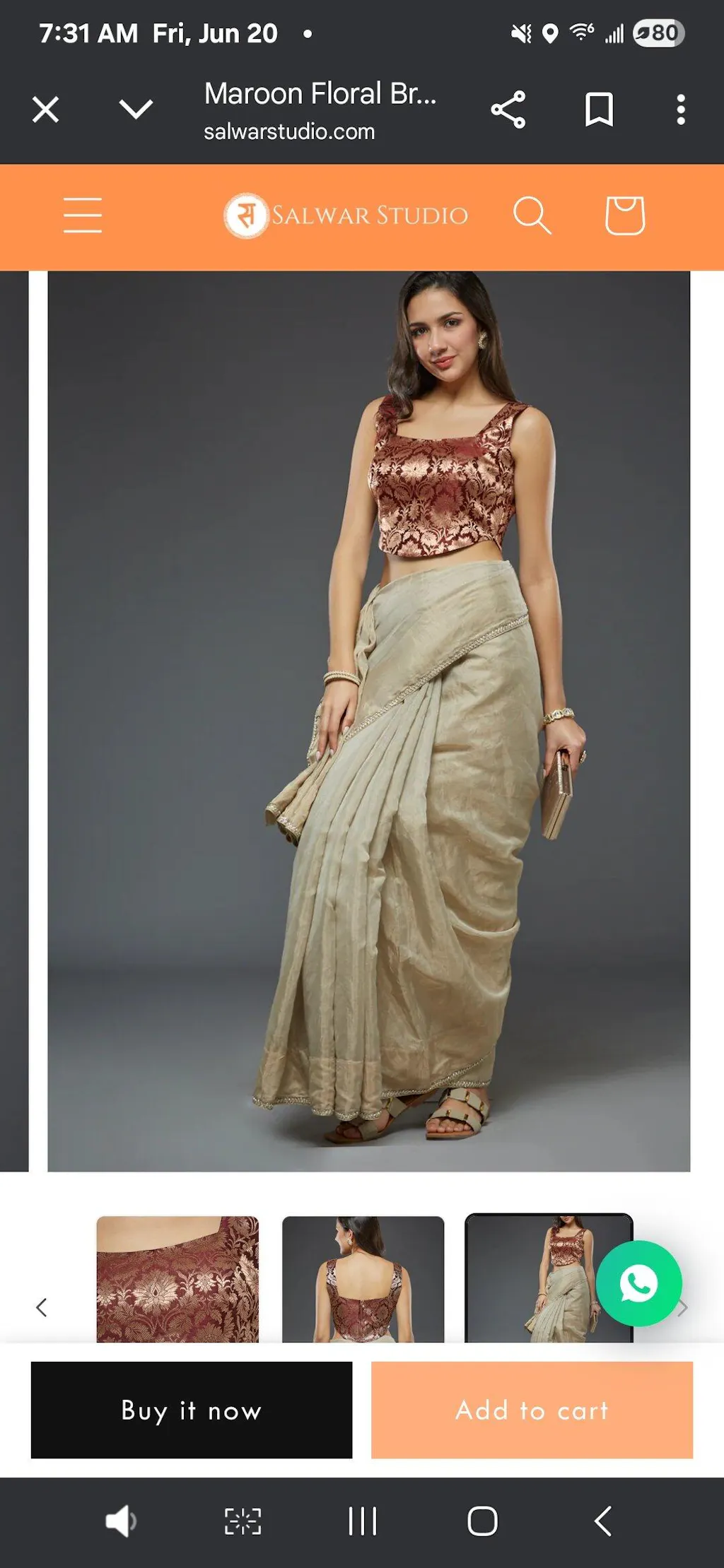 I have been looking for readymade wedding blouses and Salwar Studio sold me exactly what I wanted, to the point that I ordered a second blouse. The fit was super and their customer service team ensured I received the product in 3 days before my event. Thank you for the great experience.