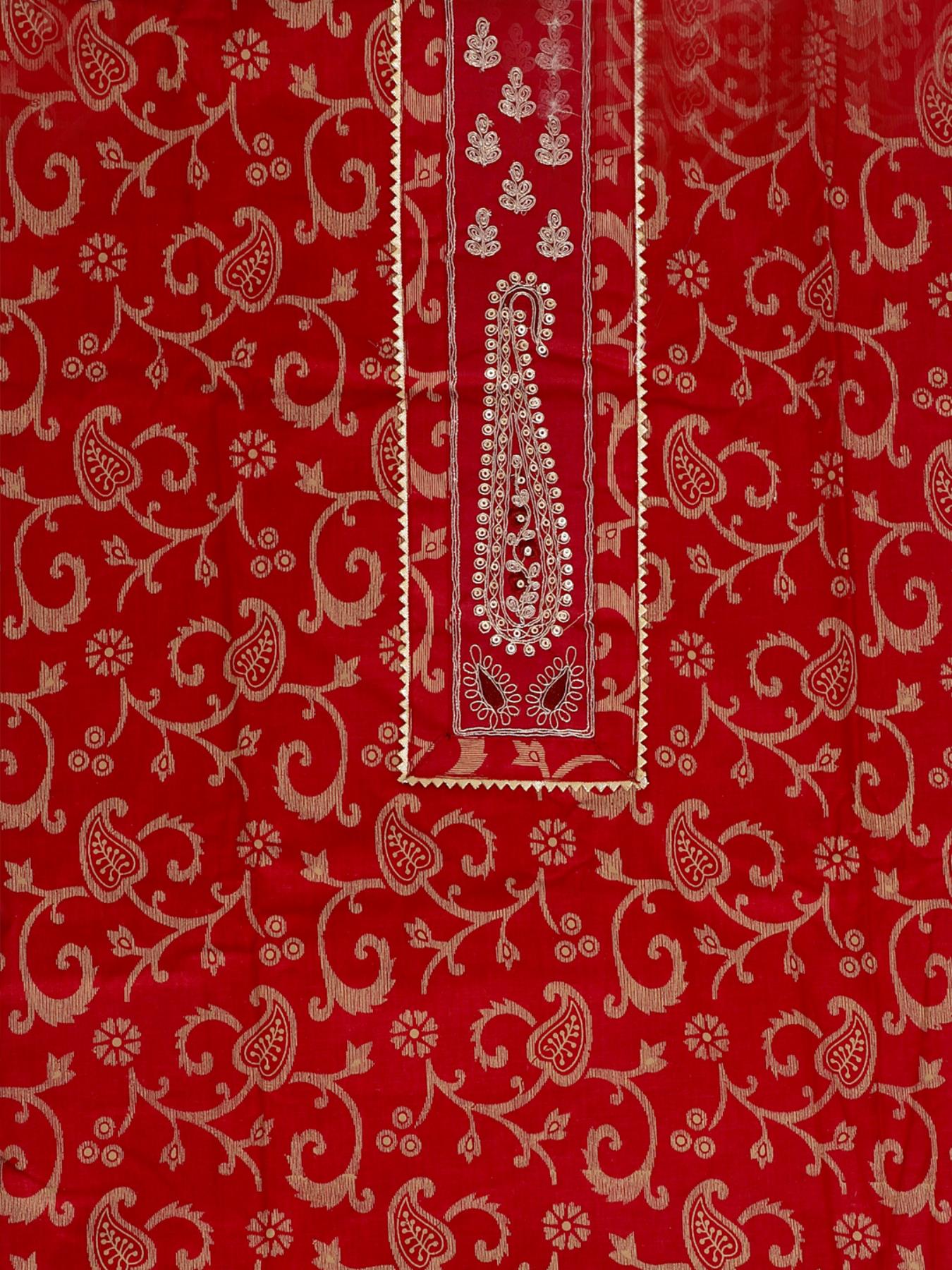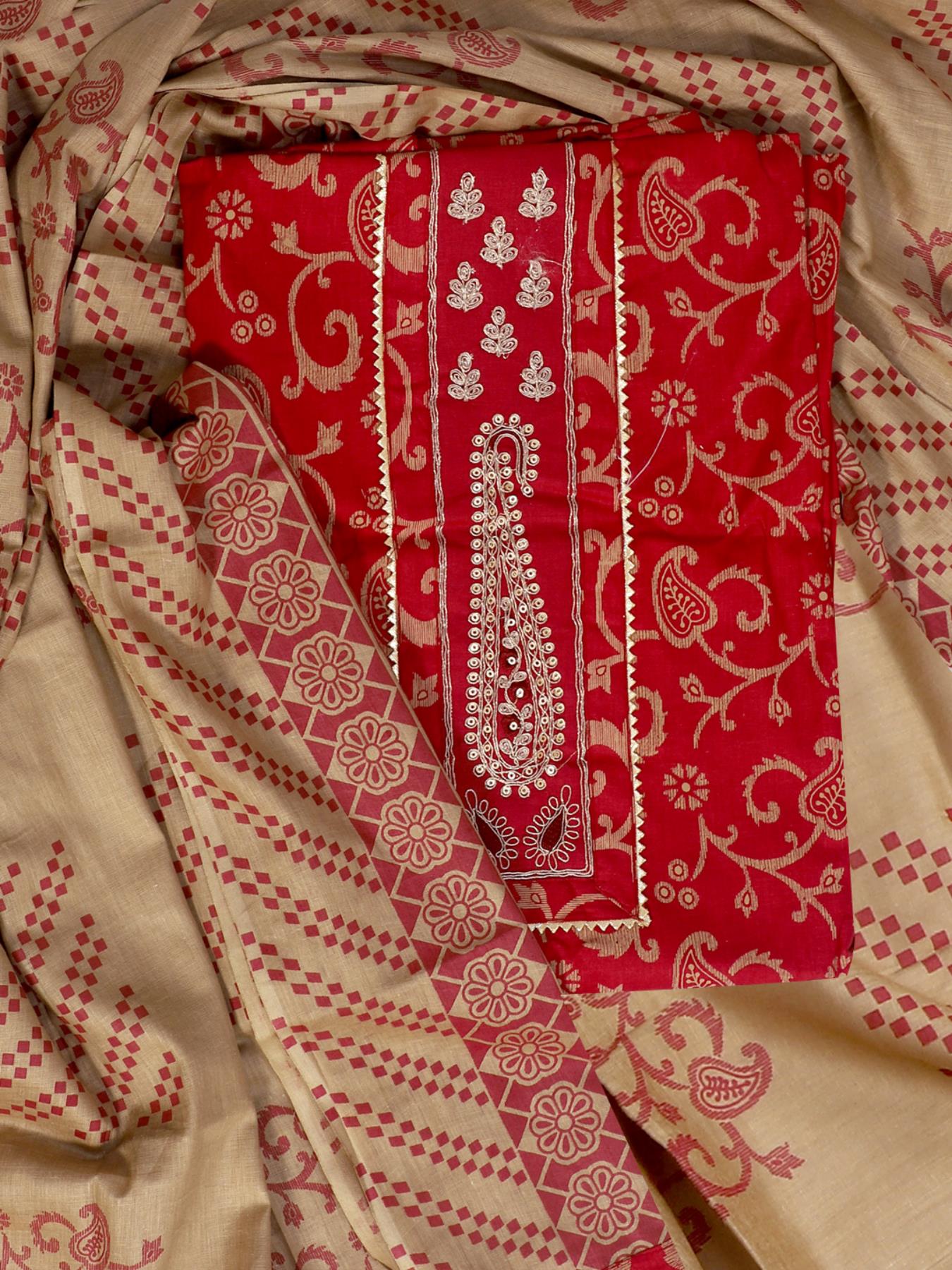 Cotton Printed Red Unstitched Dress Material With Dupatta