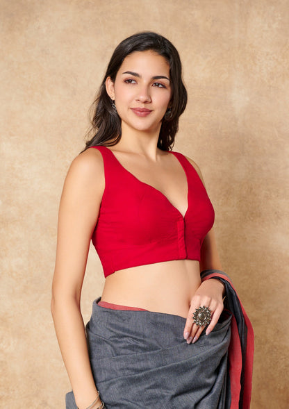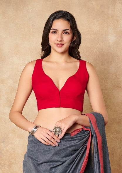 Description - Elevate your ethnic wardrobe with this elegant red pure cotton sleeveless blouse, designed with a flattering sweetheart neckline. Crafted from breathable and soft cotton fabric, this blouse offers all-day comfort while ensuring a sleek and sophisticated look. Its minimalistic yet chic design makes it a versatile piece, perfect for pairing with sarees, lehengas, or fusion wear. A must-have staple for effortless styling!