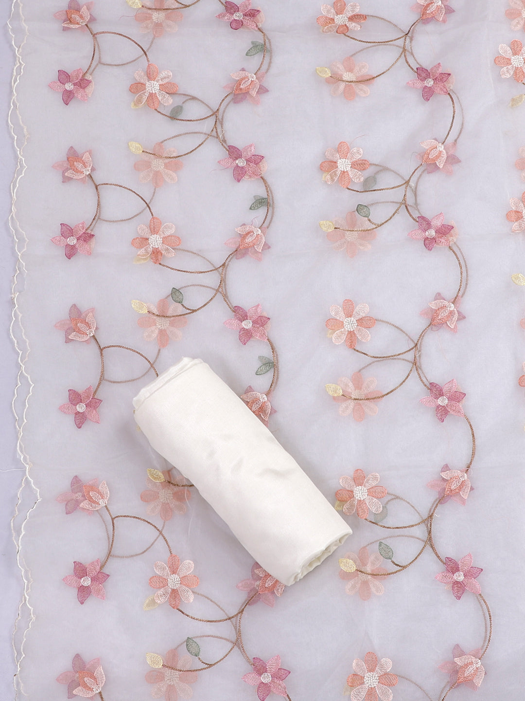 Cotton Embroidered White Unstitched Dress Material With Dupatta